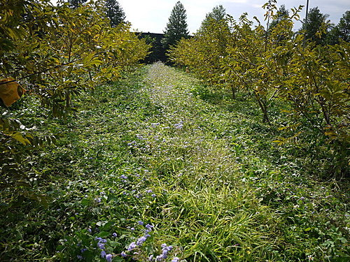 今年已邁入第七個年頭了,從一開始的堅持不灑除草劑的觀念到現今的對雜草管理有一套新的想法,即除草是一個很好的觀念,雜草要如何留對果園和生態才有幫助哩。以前的做法只是一味的將果園雜草除的一乾二盡,換來的是太陽直接曝曬到土壤,這樣對果樹只是有一點幫助而已。