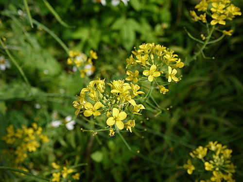 金黃色花的油菜花在一片綠油油的雜草中,顯得格外搶眼。